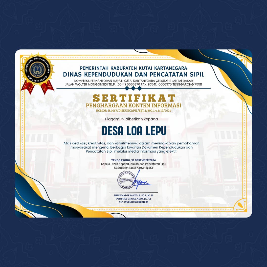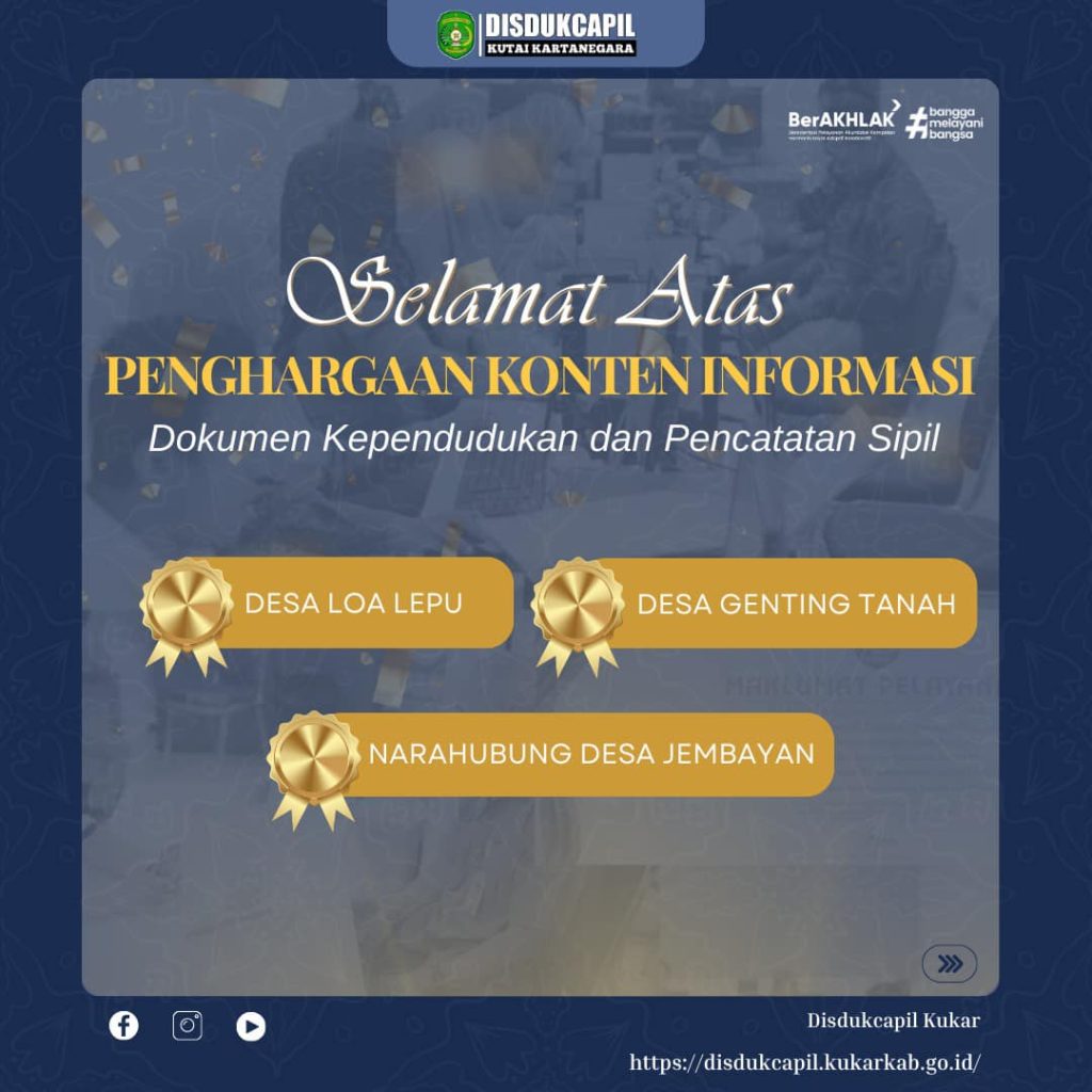 Dengan penuh kebanggaan, kami mengucapkan Terima Kasih kepada Desa Loa Lepu, Desa Genting Tanah, dan Narahubung Desa Jembayan yang telah menunjukkan dedikasi, kreativitas, dan komitmennya dalam meningkatkan pemahaman masyarakat mengenai layanan Dokumen Kependudukan dan Pencatatan Sipil.