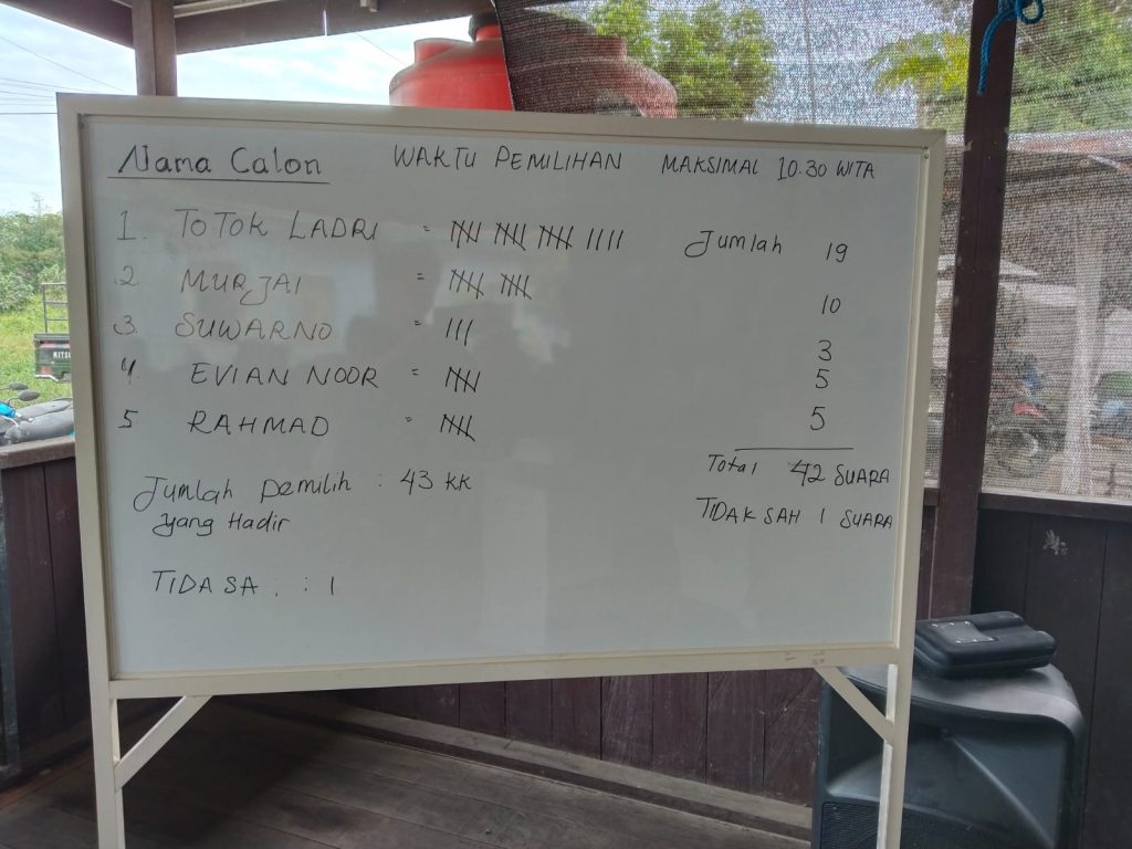 Berdasarkan hasil penghitungan suara, Bapak Totok Ladri terpilih sebagai Ketua RT 02.