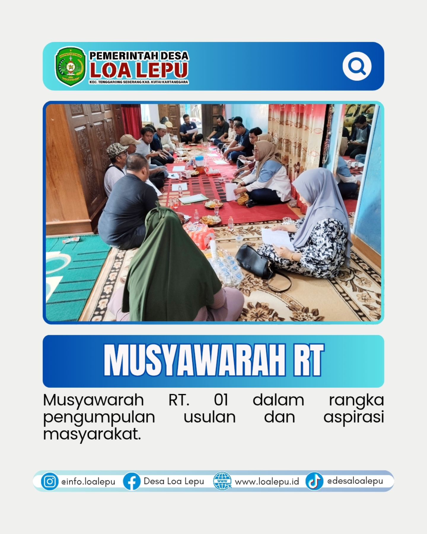 Kegiatan pengumpulan usulan dan aspirasi masyarakat membahas kegiatan di tahun anggaran yang akan datang dan sekaligus masalah sampah di Lingkungan RT. 01.